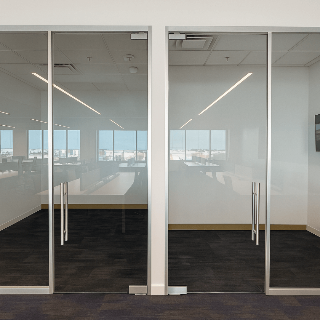 Bring openness and refinement to your workplace with frameless glass walls designed for modern, architectural clarity. These seamless partitions define space without dividing it, creating an environment that feels brighter, more expansive, and visually connected.